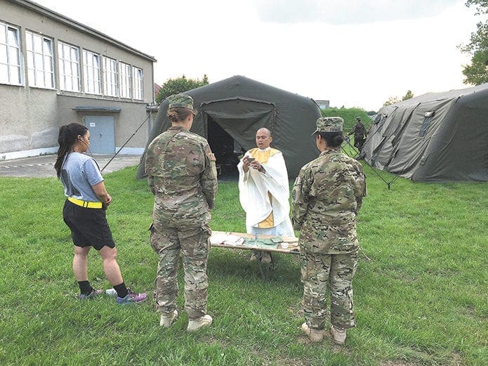 ATLANTA—Father Yuen S. Caballejo is a priest of the Archdiocese of Atlanta serving as a military chaplain. Earlier this year, he participated in a training exercise called “Saber Strike 16,” a 2,436-kilometer road march from Germany to Tapa, Estonia, using military tactical vehicles. The route took the troops through Czech Republic, Poland, Latvia and Lithuania. Father Caballejo celebrated Mass with Czech priest-chaplains.