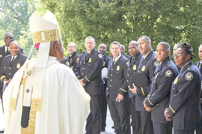 In his homily, Archbishop Gregory said a time of prayer is needed particularly this year when protests have erupted against police in several cities, and they themselves have been the targets of snipers. Public servants need public support, he said.
