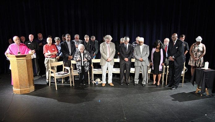Reflections were given at the one-hour event by Rabbi Scott Colbert, of Temple Emanu-El, Atlanta; Imam Plemon El-Amin, imam emeritus of the Atlanta Masjid of Al-Islam; Gareth Young, a Buddhist; Rev. Lola Scott Russell, pastor from the African Methodist Episcopal Church; and Archbishop Gregory.