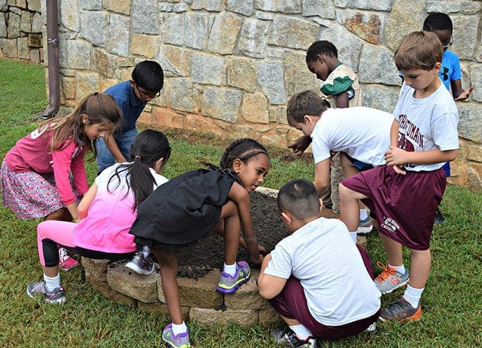 Playing in the dirt is now a part of every student’s education at St. John Neumann Regional School, Lilburn. With the help of the Catholic Foundation of North Georgia, the Captain Planet Foundation, and hard-working parent volunteers, the school recently installed a learning garden for kindergarten through eighth-grade students.