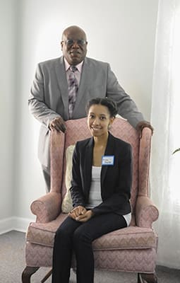 Dr. Ralph E. Bell, executive director of Sheltering Grace Ministry, standing, poses with one of the program’s success stories, Briana Baynham. She was in the program six years ago as a 23-year-old expectant mother who gave birth to a son. Once she left Sheltering Grace, she attended Kennesaw State University and earned a bachelor’s degree in accounting. Baynham also earned an MBA last May. Photo Courtesy of Sheltering Grace Ministry