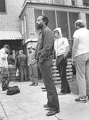 Atlanta homeless gather outside the Open Door Catholic Worker house on Ponce de Leon Avenue, in a 1990 Georgia Bulletin photo. Photo by Linda Schaefer/Archdiocese of Atlanta
