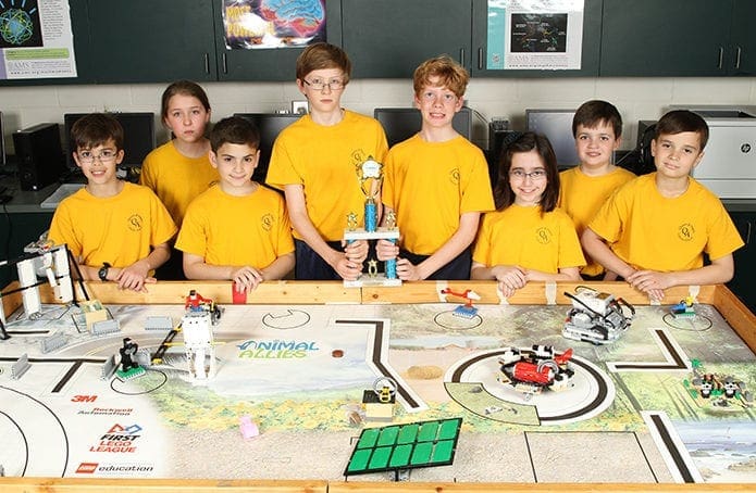 Queen of Angels School had two robotics teams this year in FIRST LEGO competition. Team “Radioactive Caterpillars,” led by coaches Dave Mowrey and Maureen Cole, made it to the super-regional level. Its members were Lucas Barquin, Ryan Cole, Ryan Combs, Sean Michals, Evan Mowrey, Matthew Ristau and William Tjokroamidjojo.
