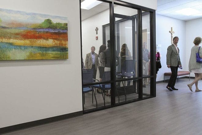 The building is 45,000 square feet with the medical clinic on the first floor. The clinic takes up about half of the building space with 24 examination rooms, six dental operatories, a vision center, which will begin services July 1, and lab and radiology services. The clinic will be able to handle more than 15,000 primary care office visits annually when at full capacity. The goal is to wrap clients into an integrated medical program giving them access to a range of services, from mental health specialists and pastoral care to dietitians to address underlying causes of poor health, such as obesity and smoking.