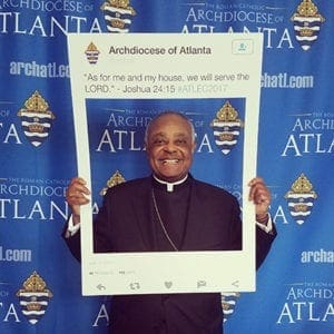 In other pictures, both Bishop Luis R. Zarama and Bishop-designate Bernard E. “Ned” Shlesinger pose similarly. All photo captions end with #ATLEC2017, the official hashtag of this year’s Eucharistic Congress, which took place Friday, June 16, and Saturday, June 17, at the Georgia International Convention Center. And this year, the Eucharistic Congress went viral.