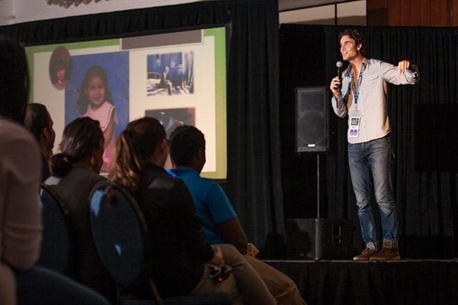 Evan Lemoine, keynote speaker for the Friday evening young adult track at the 2017 Eucharistic Congress, shared his story about growing up in Louisiana and the choices and behaviors that affected his family. Photo By Thomas Spink