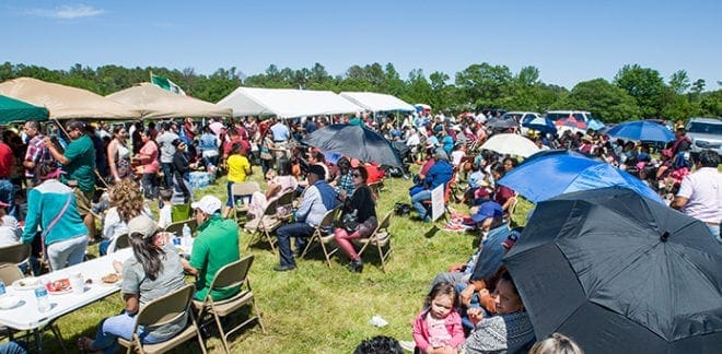 Parishioners and Cedartown residents celebrate the St. Bernadette Church groundbreaking with an afternoon of tailgating and family activities. Archbishop Wilton D. Gregory and priests from neighboring parishes joined the festivities on Good Shepherd Sunday, May 7. Photo By Gibbs Frazeur