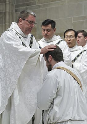 The archbishop urged the candidates to have constant conversations in prayer with Christ. He also encouraged them in their commitment to celibacy and in the promise of obedience to the bishop they would be making.