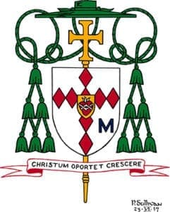 For his motto, His Excellency, Bishop Shlesinger has adopted the Latin phrase “Christum Oportet Crescere,” that is taken from the 30th verse of the third chapter of St. John’s Gospel. In this passage, St. John the Baptist admonishes the readers that for our deep and effective faith in Jesus, “Christ Must Increase” as our intentions “must decrease.”