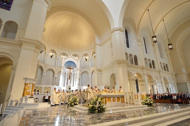 Bishop Michael F. Burbidge of Arlington, Va., former bishop of Raleigh, N.C., concelebrates Mass July 26 at the dedication for Holy Name of Jesus Cathedral in Raleigh. CNS photo/J. Eric Braun, Courtesy Diocese of Raleigh