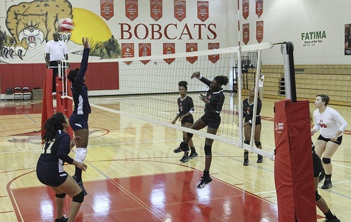 FAYETTEVILLE—In the first of two volleyball matches Sept. 14, Our Lady of Mercy High School defeated Cristo Rey Atlanta Jesuit High 2-0 (25-8, 25-9) in the first match ever held between the two teams. Junior Tamia Hall led Mercy with five kills and one block. Senior Vanessa Smith had three kills and eight aces. Senior Eboni Winston dished out 15 assists.