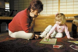 In this 2004 photo Jeannie DeCarlo watches her 2-year-old granddaughter, Ansley, put a puzzle together. DeCarlo and her husband, Lou, have cared full-time for Ansley since she was 6 months old. Photo By Michael Alexander