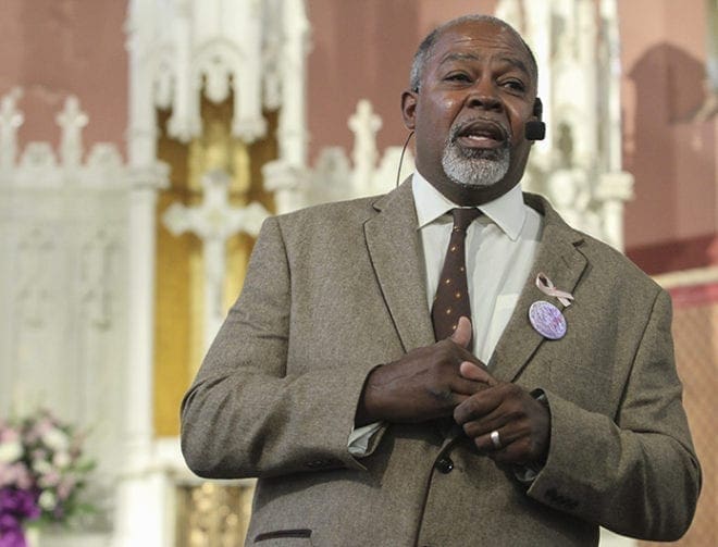 The sanctuary of St. Anthony was full Oct. 22 for the forum, which featured Clare Gilbert and Grace Akan of the Georgia Innocence Project (GIP). The highlight of the event was speaker Calvin C. Johnson Jr., who was released from prison in 1999 as the first person in Georgia to be exonerated because of DNA evidence.
