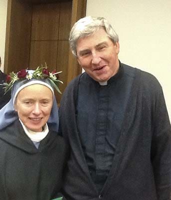 Msgr. John Walsh, pastor of St. Joseph Church, Marietta, right, attended the profession of Sister Mary Beatrice Raphael, left, in November. Sister Beatrice’s family attends St. Joseph. Photo By Bill Stults