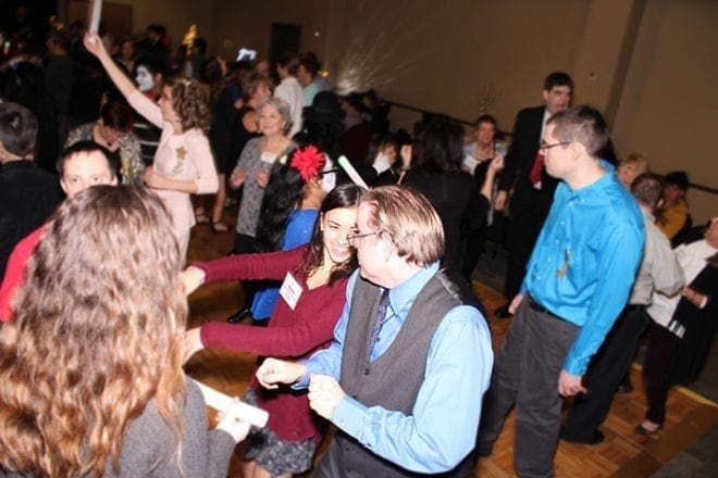 The Fun Night! social ministry was launched by Karen Hastings, a parishioner of St. Catherine of Siena Church, Kennesaw, and it has now expanded to other parishes. This night featured dinner and dancing, with red carpet introductions for the participants. PHOTO BY MOLLY ROWLAND