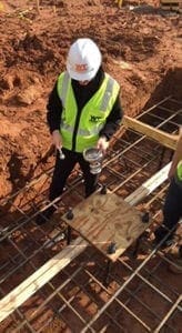 Father Darragh Griffith, pastor, blessed the foundation of Mary Our Queen’s future spiritual home. A statue of Our Lady of Fatima was buried in the concrete at the Peachtree Corners church.