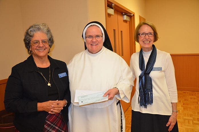 Hawthorne Dominican Sister Miriam Smith, Mother Superior, accepted a $150,000 check from the auxiliary. The money comes from the annual raffle sales, the silent auctions from the annual champagne luncheon and individual contributions.