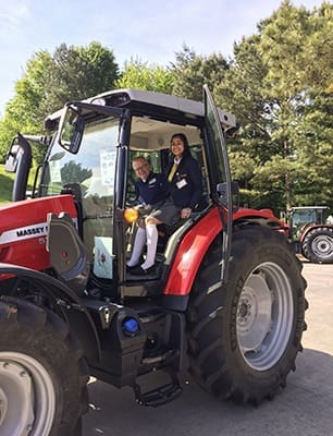 During her corporate work study job at AGCO Corporation, an agricultural equipment manufacturer based in Duluth, Cristo Rey Atlanta senior Bethy Ramirez-Sanchez had a chance to drive one of the company’s tractors during a supervised tour by AGCO employee Blane Clark. Photo Courtesy of AGCO Corporation