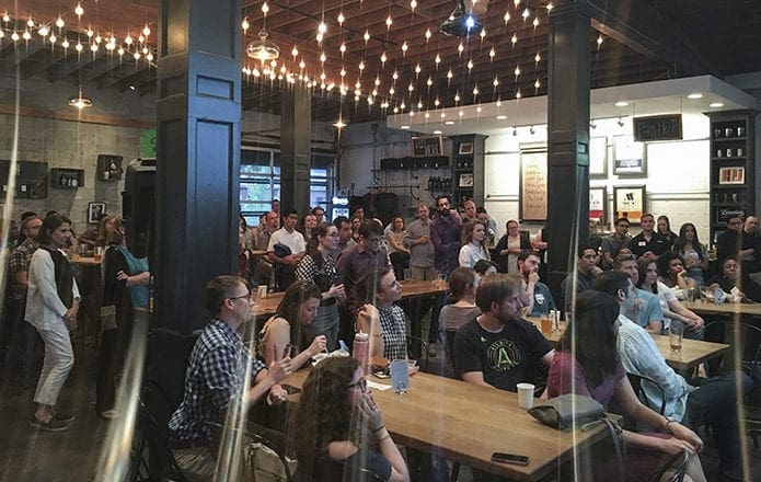 Alix’s plan was simple: Ask six of the largest young adult ministries in the metro Atlanta area if they would co-host the event—they all agreed; find a location—Eventide Brewing donated their space; and find a speaker—Bishop Bernard E. Shlesinger III immediately accepted the invite. Lastly, promote the event on Facebook where it received nearly 100 RSVPs.