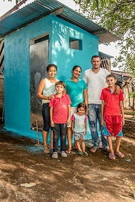 The Medina Family of Los Rotarios, Nicaragua, proudly stands with their recently constructed modern bathroom, provided by Amigos for Christ. The organization is based in Buford and continues work in Nicaragua despite political unrest. Photo Courtesy of Amigos for Christ