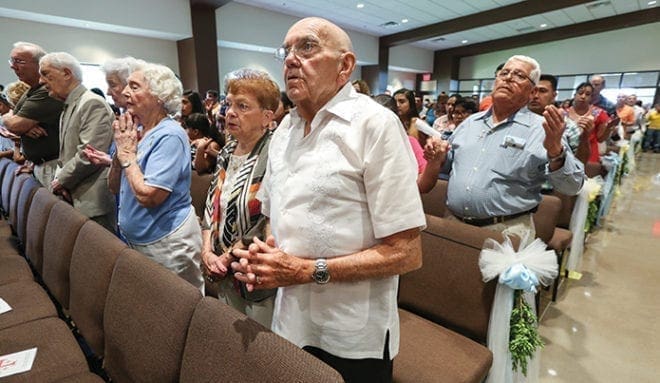 (R-l) Eighty-six-year-old Jose Arencibia and his wife Carmela, 87, are seated next to some other elder members of the parish community, including Joyce Dekle. The three have been affiliated with the parish for over 50 years. Photo By Michael Alexander