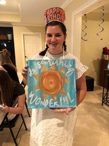 Instead of gifts, Koenenn asked friends to donate to Mustard Seed Communities. And at her party, local ministry Caring Canvases helped her organize a special painting event. Caring Canvases spreads uplifting and encouraging messages to people in need with unique paintings.