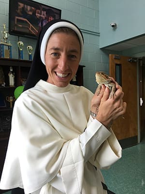 Blaze, a bearded dragon, won the contest by one vote, although it was a close race on the last day of voting. The pet’s caretaker is fifth grade teacher, Sister Karol Marie, OP. She received a $100 gift card to continue to provide for Blaze’s needs.