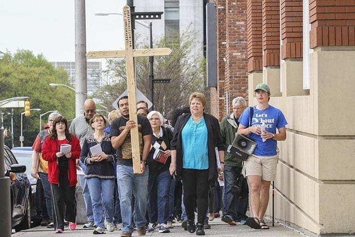 En las calles del centro de Atlanta, los creyentes pueden participar en un recorrido de oración anual multilingüe y ecuménico que vincula los sufrimientos de Jesús con las injusticias de hoy.