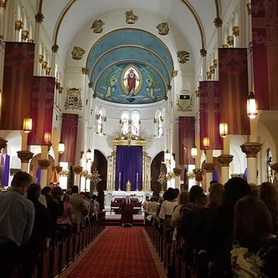 The congregation prepares for Mass with celebrant Archbishop Wilton D. Gregory for the annual AACCW Recognition Day Mass at the Basilica of the Sacred Heart of Jesus. Photo By Samantha Smith