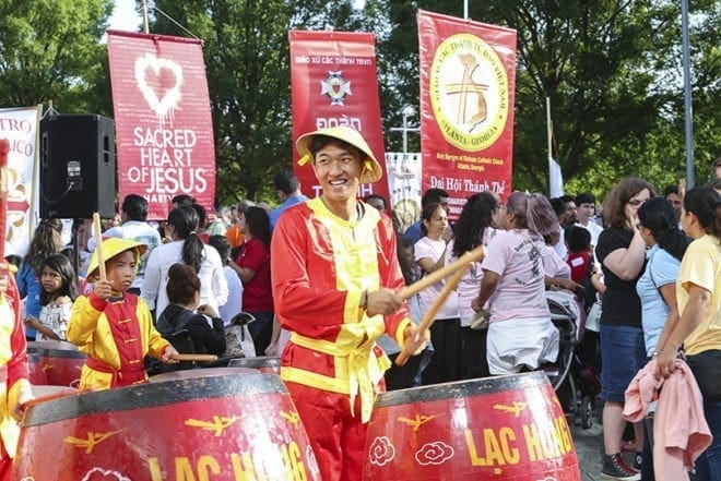 Believers from the four corners of the globe who make their home in the Archdiocese of Atlanta paid tribute to their native cultures, from Aztec dancers in their finery to the costumed drummers of Holy Vietnamese Martyrs Church, Norcross.