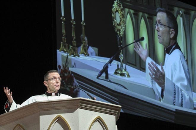 Bishop Robert Reed, an auxiliary bishop from Boston, Massachusetts, was the morning homilist at the 24th annual Eucharistic Congress. Photo By Michael Alexander