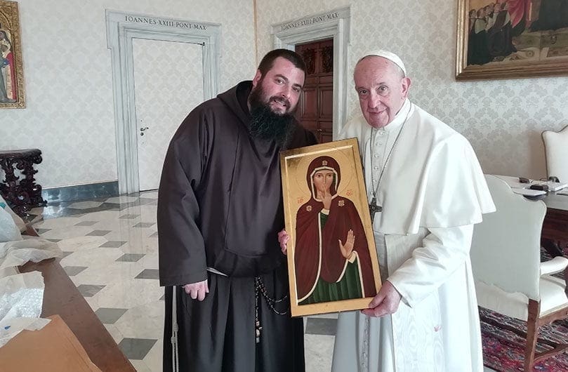 “Just think how many Marian icons he gets (as gifts) and he decides to put this one there” as well as a smaller copy of one on his desk, said Capuchin Father Emiliano Antenucci, who commissioned the icon and gave a copy to the pope.