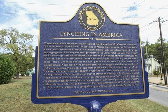 In the presence of community, faith-based and government leaders, this historic marker was unveiled on March 18, 2017 by the Equal Justice Initiative (EJI) to commemorate the lynchings of African Americans in Georgia’s Troup County. The marker can be found on the side of LaGrange’s Warren Temple United Methodist Church. According to the EJI, over 4,000 lynchings of African Americans took place across 20 states between 1877 and 1950. Nearly 600 occurred in Georgia. Photo By Michael Alexander