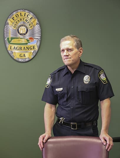 LaGrange’s Chief Louis Dekmar has been a police chief for 28 years. Under his leadership his officers have always emphasized community policing, but he said the department’s Trust Initiative is more deliberate. Dekmar, a member of St. Peter Church, LaGrange, is the 2019 recipient of the St. Thomas More Society’s St. Francis of Assisi Award. Photo By Michael Alexander