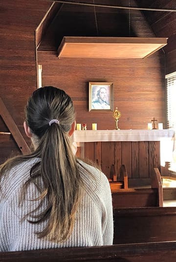 A student spends time with Jesus during eucharistic adoration in the Kennedy Chapel at the University of West Georgia in Carrollton. The campus ministry hosts adoration weekly on Wednesdays.