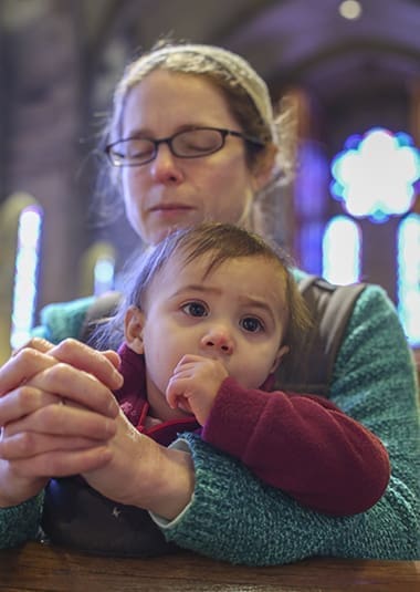During the recitation of the rosary at the Cathedral of Christ the King, Atlanta, Jan. 22, a young child can be seen resting in the arms of his praying mother. Photo By Michael Alexander