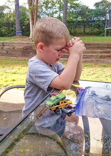 Brandee Hanes’ son, Owen, prays for his grandfather, Chuck Paulus, to heal from the coronavirus. The photo has been shared multiple times on social media as the family receives growing support.