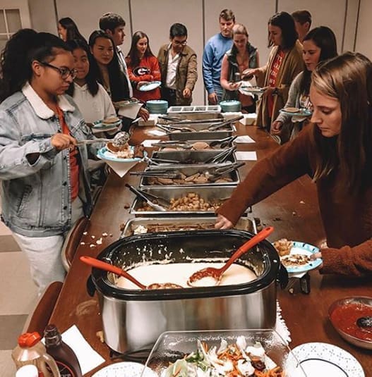 Late night breakfasts are a tradition at the University of Georgia Catholic Center. Volunteers begin to serve food at 8 p.m. to about 150 students each night of finals week. Community members donate food, snacks, and time to make sure the center is stocked. The center is open for 24 hours during finals week. Photo Courtesy of Catholic Center