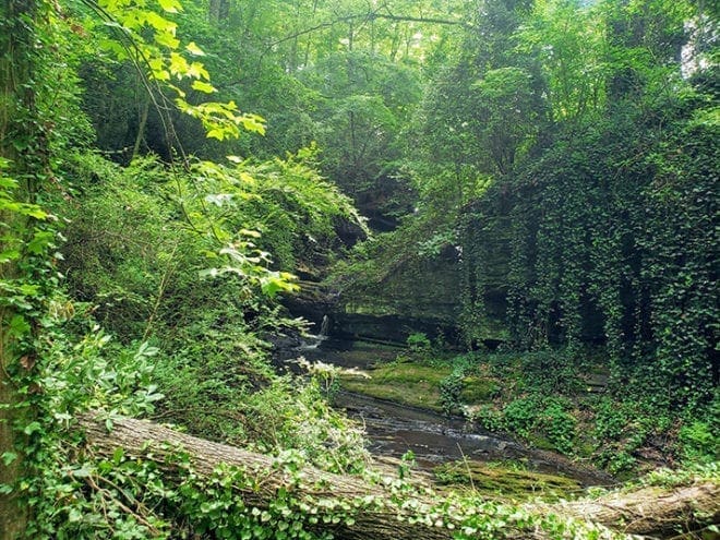 Today the waterfall is much more visible due to the work done by a professional arborist and tree service to remove brush and log debris away from it. Photo By Michael Alexander