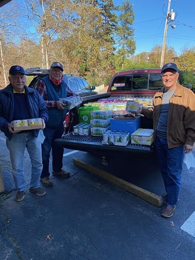 This year, the Knights reached out to two larger Catholic Churches in the Atlanta suburbs—St. Brigid Church in Alpharetta and St. Ann Church in Marietta–for help. The St. Vincent de Paul groups at both churches quickly and graciously agreed to use their SVdP food pantries’ resources and parish outreach efforts to donate food for the Good Samaritan Knights project. Their generosity provided 80 boxes of the base food needed for this year’s project. This food was safely picked up and transported back to Ellijay and boxed up by the Knights.