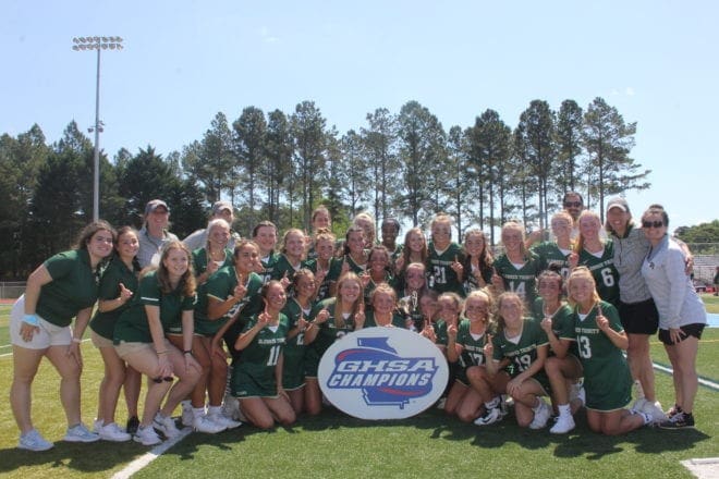 The 2021 Blessed Trinity girls’ lacrosse team won the A-5A state championship. The team defeated Starr’s Mill High School in the finals 12-6.