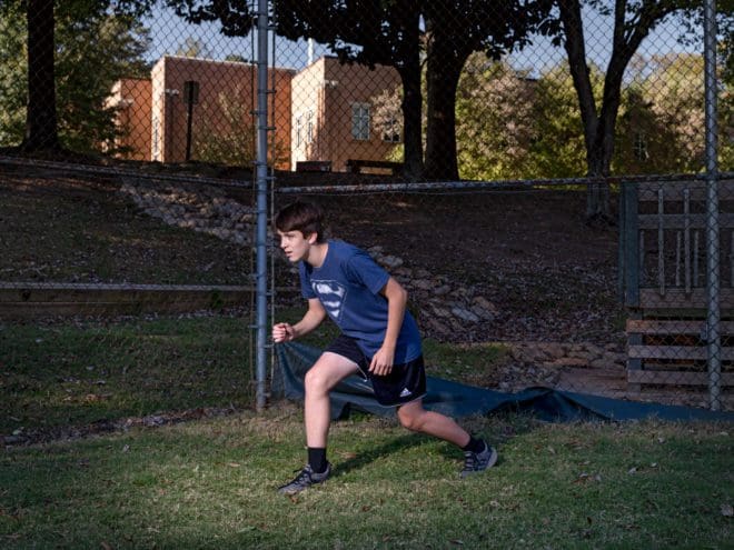 Holy Spirit Prep cross-country runner Norman Labbe’ prepares to start a timed lap during a practice on the school grounds. Photo by Johnathon Kelso