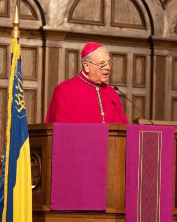 Archbishop Gregory J. Hartmayer, OFM Conv., invited the Ukrainian Catholic and Orthodox communities to gather in prayer at Holy Spirit Church. Photo by Mauricio Vives