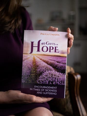 Author Paula Umana holds her book, “40 Gifts of Hope: Encouragement in Times of Sickness and Suffering.” Photo by Johnathon Kelso