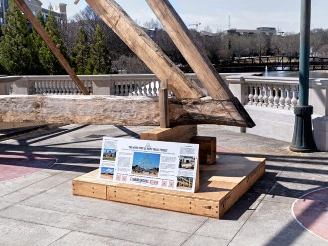 The truss exhibit was moved from The Catholic University of America to the National Mall in Washington, D.C., before being in the National Museum Building until September 2021. The exhibit was reconstructed in Atlanta on March 7 and will be at the Millennium Gate Museum until April 25. A complimentary exhibit including architectual research from Model of “La Forêt” is inside the museum as well.
