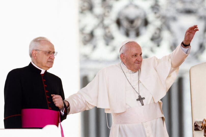 The pope made his remarks April 27 during his weekly general audience in St. Peter’s Square, where he also asked that people “persevere in praying constantly for peace.”