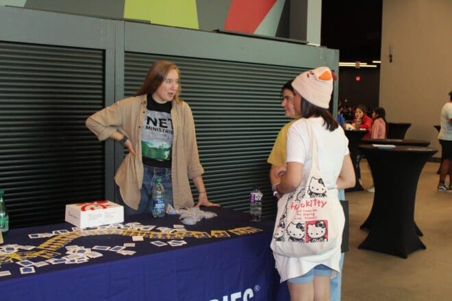 While the fun and games were a point of attraction for the young adults, the chance to gather and focus on their faith was the biggest draw. Priests were on hand to hear confession, and the entire event began with 20 minutes of eucharistic adoration.