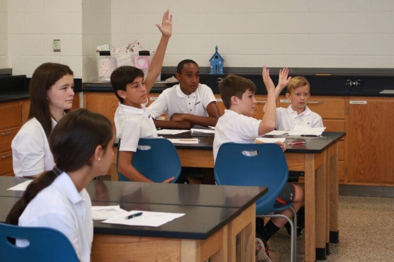 Seventh grade students were eager to ask questions at their recent orientation at Marist School. The school year begin with the traditional half day, Schola Brevis, on Aug. 19. The school began a search for a new president in the spring.