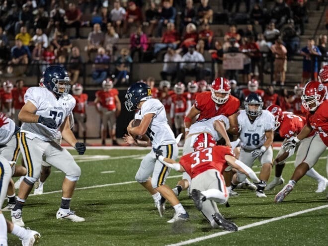 For Marist senior Spencer Camastro, who plays on the defensive and offensive line, the team can learn from the loss as it faces strong opponents in the schedule. When the defense made two big plays against Woodward, the team had new opportunities. For Camastro, the lesson is the priority of game focus and always being prepared on the field because any play has the potential to reset the game’s momentum.