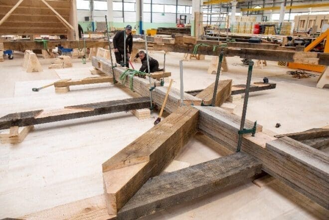 Along with three other small companies based in different regions of France–Le Bras Frères, Asselin and MdB Métiers du bois–Cruard Charpente has chosen to set up its Notre Dame workshop in the leafy valley of Val de Briey.